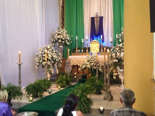 El domingo en la mañana hay misa a las 8,10 y 12 M