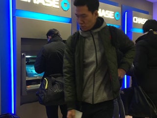 If the front ATM bank has a line, try the freestanding one by the tellers inside. It's always free.