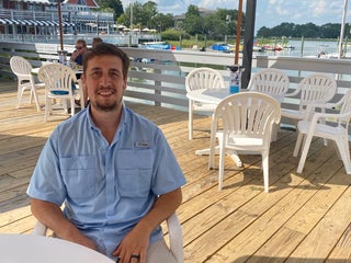 Outdoor seating right on the water, outdoor bar, lots of frozen drinks, live music, good food