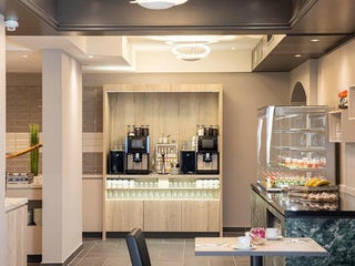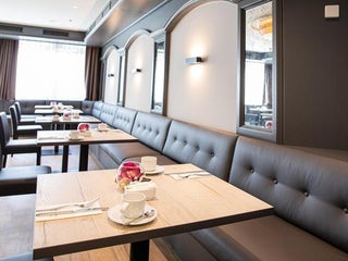 No club lounge but they give you a free drink voucher + choice of some small snack items or 50% off bar. Decent location, close enough to airport, easy to find from Niederrad stop.