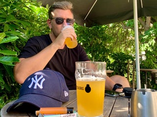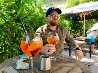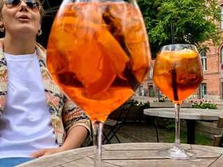 The tables outside has a wonderfull evening sun.