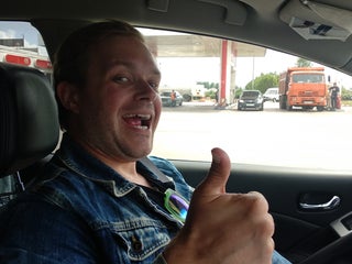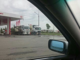 Возле заправки убитый на хрен асфальт, уже как две недели, мы влетели и убили два колеса, тут же за нами еще две машины убрались... :( Зато есть шинка))