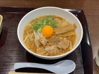 サービスエリアには、フードコートもありますが、「上板屋」の『たらいうどん』がお勧め。徳島県のご当地名物『たらいうどん』は、その名の通りたらいのような木の器にアツアツのうどんが入ったもの。おうどんは、もちもりした触感で表面はとてもつるつるしていて、とても喉越しが良くて美味しい。ちょっと油断すると、お箸からうどんがつるっと落ちてしまうくらい。つけ汁もアツアツなんですよ。 写真はかつ丼セット¥980。