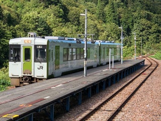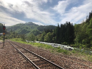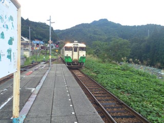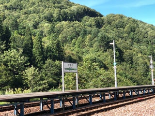 無人駅ですが、駅前には自販機が数台あり、ちゃんと補充の配送車もやってきますw ホームに立つと聞こえるのは川のせせらぎだけ。列車は一日上り4本(始発1本含む)、下り3本です。撮影目的での訪問は車をお勧めします。