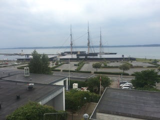 Dieses Apartment mit Blick auf die Bucht von Ebeltoft und das Kriegsschiff Fregatte Jylland aus den 1860er Jahren befindet sich in einem großen Gebäude über einer alten Apotheke. WLAN und die Parkplätze nutzen Sie kostenfrei.